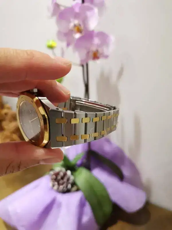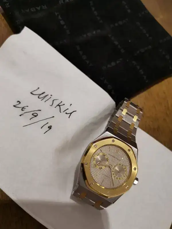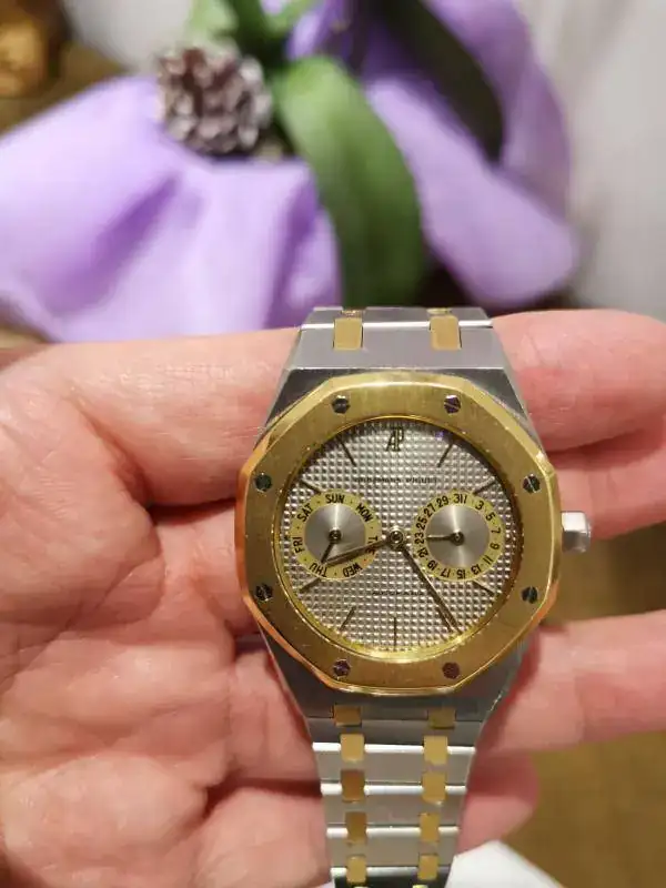 Pongo a la venta Audemars piguet royal oak day date de acero y oro en muy buen estado,es de 36mm pero con la corona 40mm(adjunto con una foto de un reloj de 39mm y claramente se ve más grande el AP, solo dispongo de reloj comprador en año 91 pero repito en muy buen estado que se puede apreciar en las fotos.