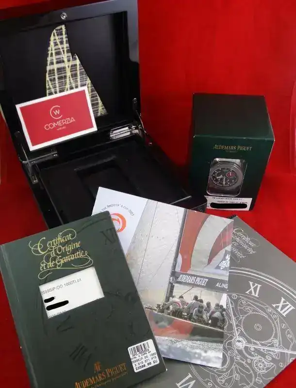 El reloj fue adquirido en 2003, en su lanzamiento. Ha sido usado moderadamente y ha pasado revisión completa en Audemars Piguet Iberia, siendo recogido el 1 de Junio de 2018, por lo que su estado es realmente de reestreno y con garantía oficial durante un año. Incluye todo el set, formado por libro de garantía, manual díptico Alinghi, certificado exclusividad de la edición limitada, caja de madera exclusiva Alinghi y sobre-caja de cartón. En su interior un calibre base JLC completamente revisado.