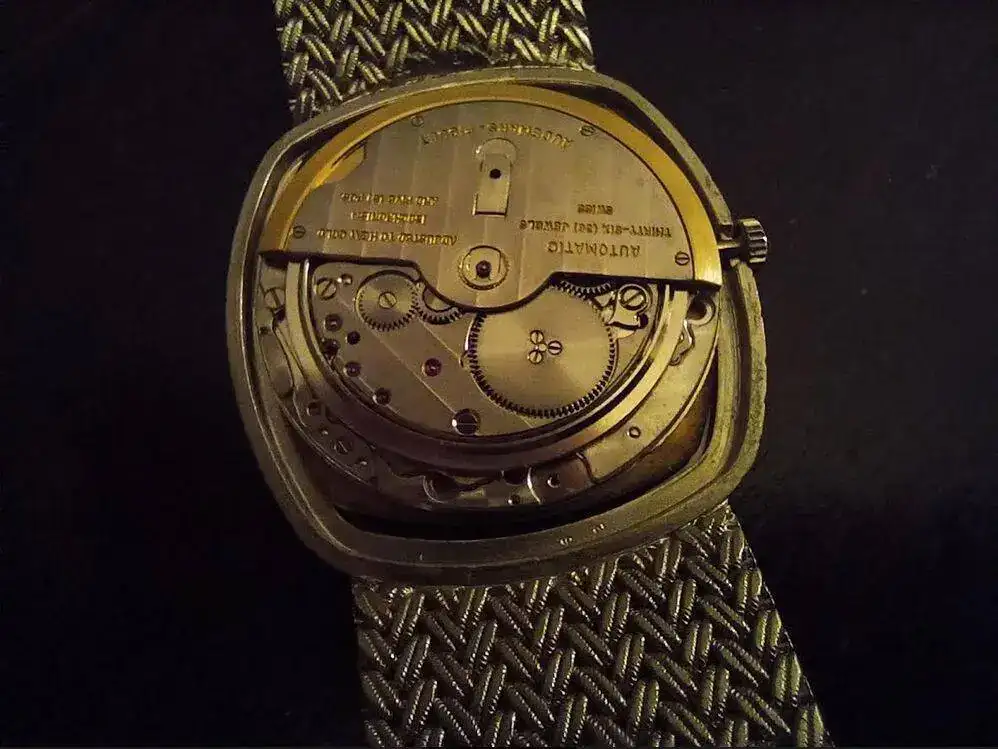 El calibre lleva volante Gyromax como los Patek Philippe, el rotor lleva un anillo que gira encima de cuatro ruedas de rubines, tiene un sonido unico como cristal cuando gira. El rotor lleva un segmento de oro (creo) 22 kilates. Este calibre de mi punto de vista es el automatico mas bonito de todos los tiempos. por supuesto hace interesante este reloj por coleccionistas.