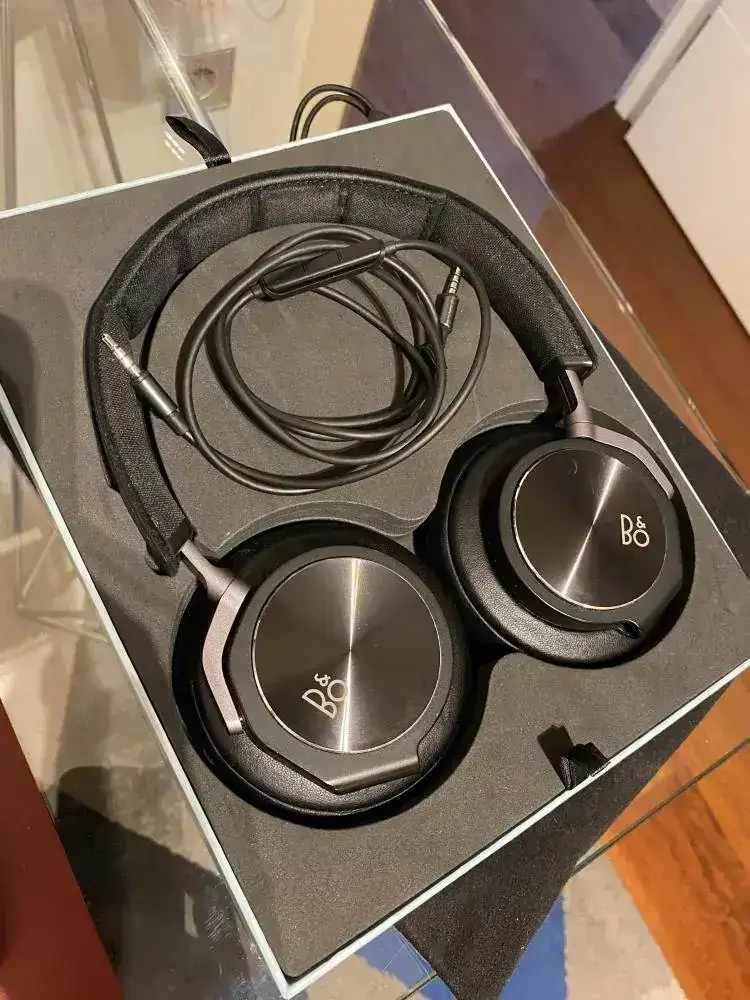 Saco a la venta por no usar estos auriculares H6 Beoplay de la afamada B&O. Color negro, pads en piel de cordero muy suave. Han sido usados, pero siempre en casa y con cuidado. No han salido al exterior nunca. En mi opinión buena calidad, muy cómodos y un sonido rico y equilibrado.