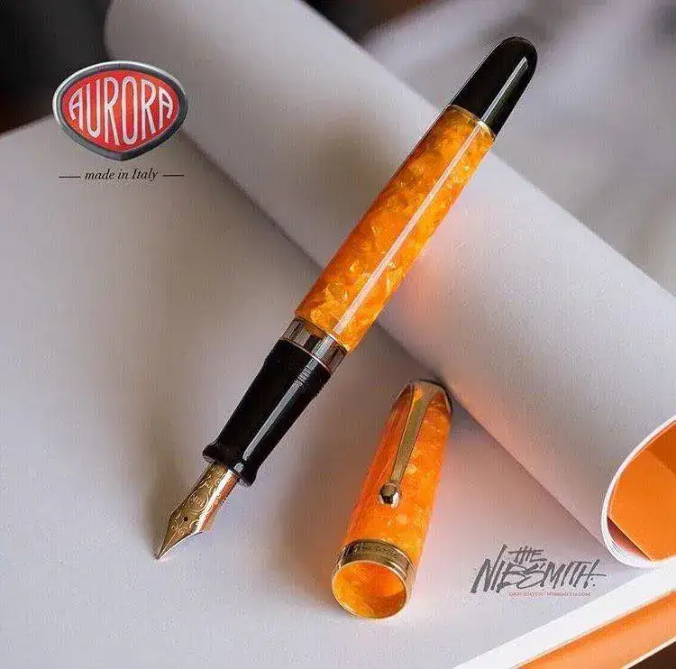 Buff, Zaida.... Pues no la veo, me parece otro error de Aurora innecesario, pues para mi es bastante mejor marca por historia, producción (se lo fabrica todo, incluido sus maravillosos plumines) y acabados que Delta, a la que le está plagiando descaradamente "su naranja".... Ya lo hizo hará 3 o 4 años con la "Mar Ionio", enésima variante limitada de la Optima (con ese color, precio similar y agarre metálico). Yo la tuve y me deshice de ella por estas razones....