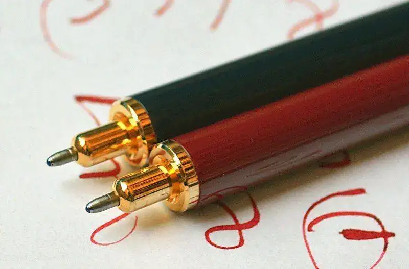 Ofrezco para su venta este Conjunto de dos Bolígrados AURORA HASTIL en laca roja y en laca azul marino con terminaciones en dorado.