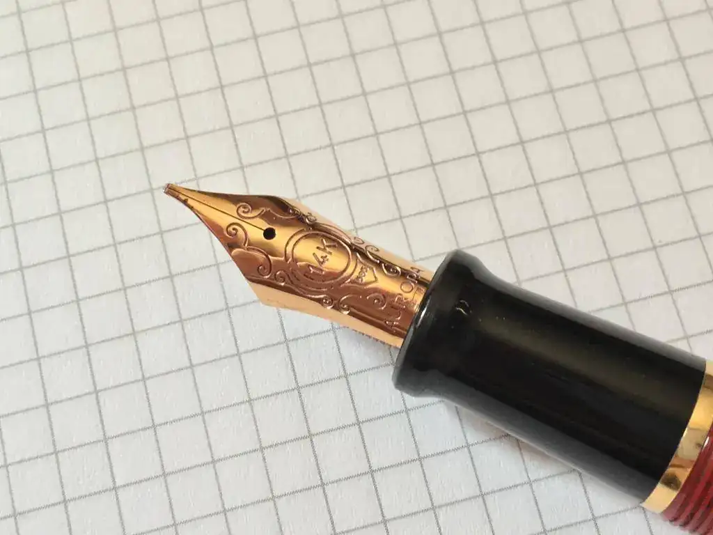 Lleva un plumín de oro en punto Stub (para haceros una idea, yo lo veo un pelín mas fino que el 1.1.mm de Lamy Safari).