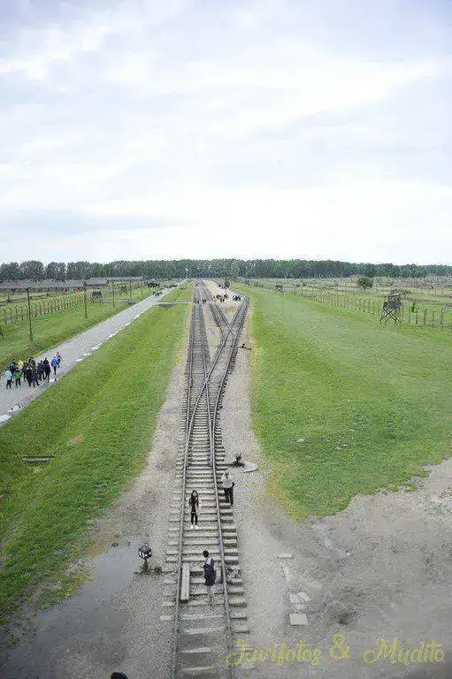 Bueno, llegamos a Birkenau y, la llegada es prácticamente paralela a las vías del tren.La verdad es que ,el subidón que me pegó el cuerpo fue enorme, pensé: hostia !!! no me lo puedo creer, tantas veces que he visto esto y, ahora estoy aquí. Impresionante.