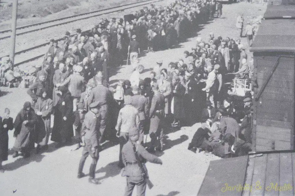Este era el recibimiento que tenían los prisioner@s, trasladados en vagones de ganado, después de días y días sin comer ni beber.