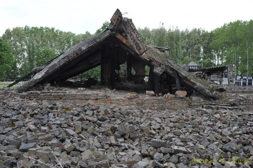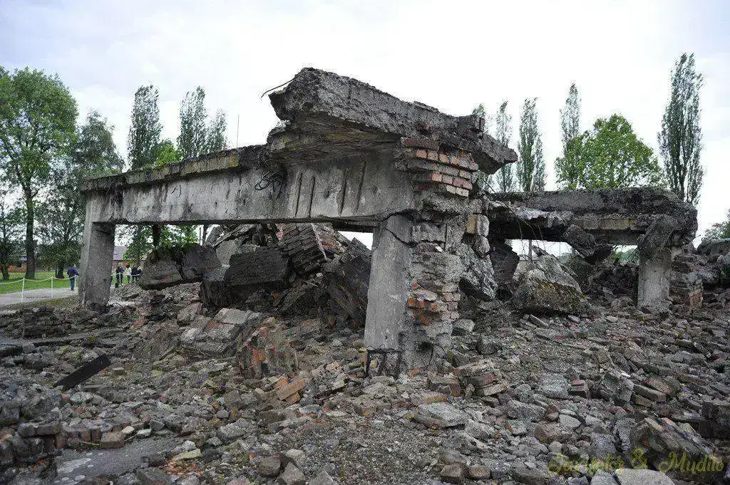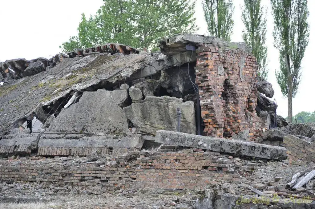 Cuando los alemanes supieron que el ejército ruso se acercaba, que era inminente la liberación del campo y la guerra se daba por finalizada, se apresuraron a destruir todo lo posible para no dejar ningún rastro posible sobre la barbarie acontecida allí. Esto fue lo que se destruyó del campo: las cámaras de gas y los crematorios.