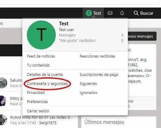 Después nos vamos a nuestro propio perfil y damos clic en "contraseña y seguridad"
