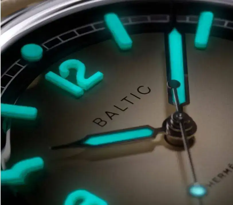Baltic afirma que los índices son de Super-Luminova, (pero según un medio especializado no son enteros de pasta, sino que son un bloque con recubrimiento de la pasta luminiscente), pero se iluminan también por los costados: