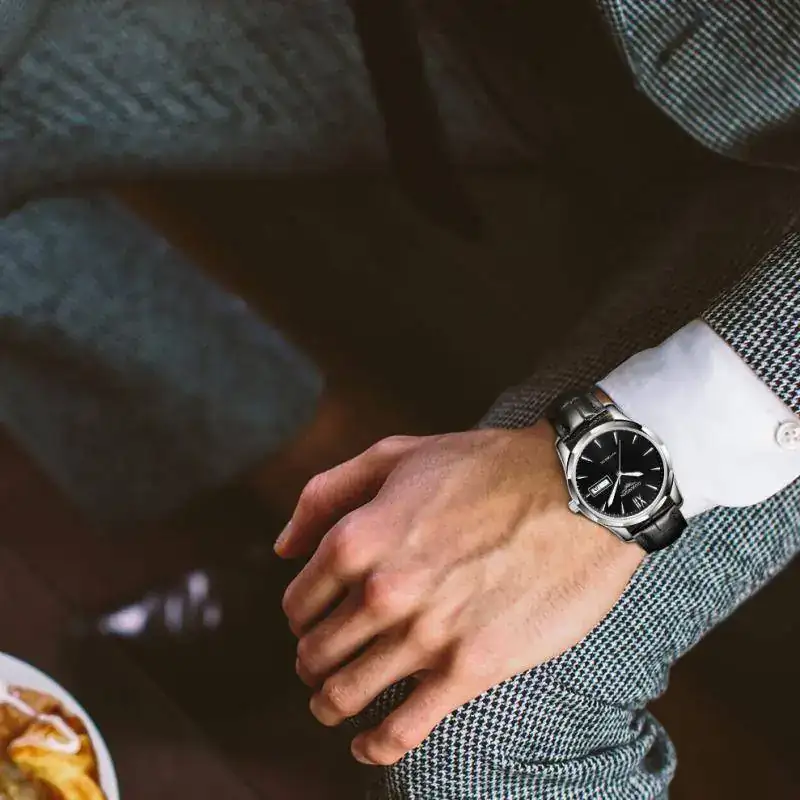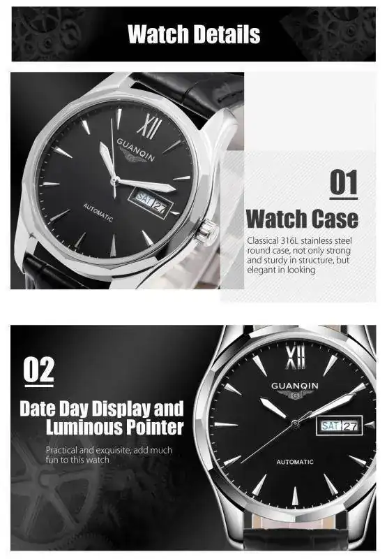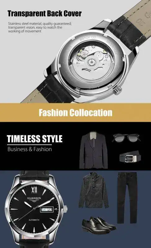 El GUANQIN GJ16034 (55,56€) lleva el NH36A de Seiko (con parada de segundero y carga manual) es de acero con cristal mineral WR30m y correa de cuero, fondo visto y tiene una pinta elegante. Me interesa por que lleva este calibre.