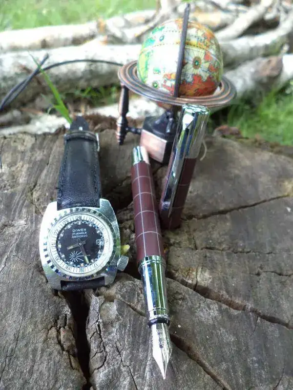 En las fotos finales la señora tímidamente acompañada por reloj militar argentino de dotación Diwen y sacapuntas Die Cast.