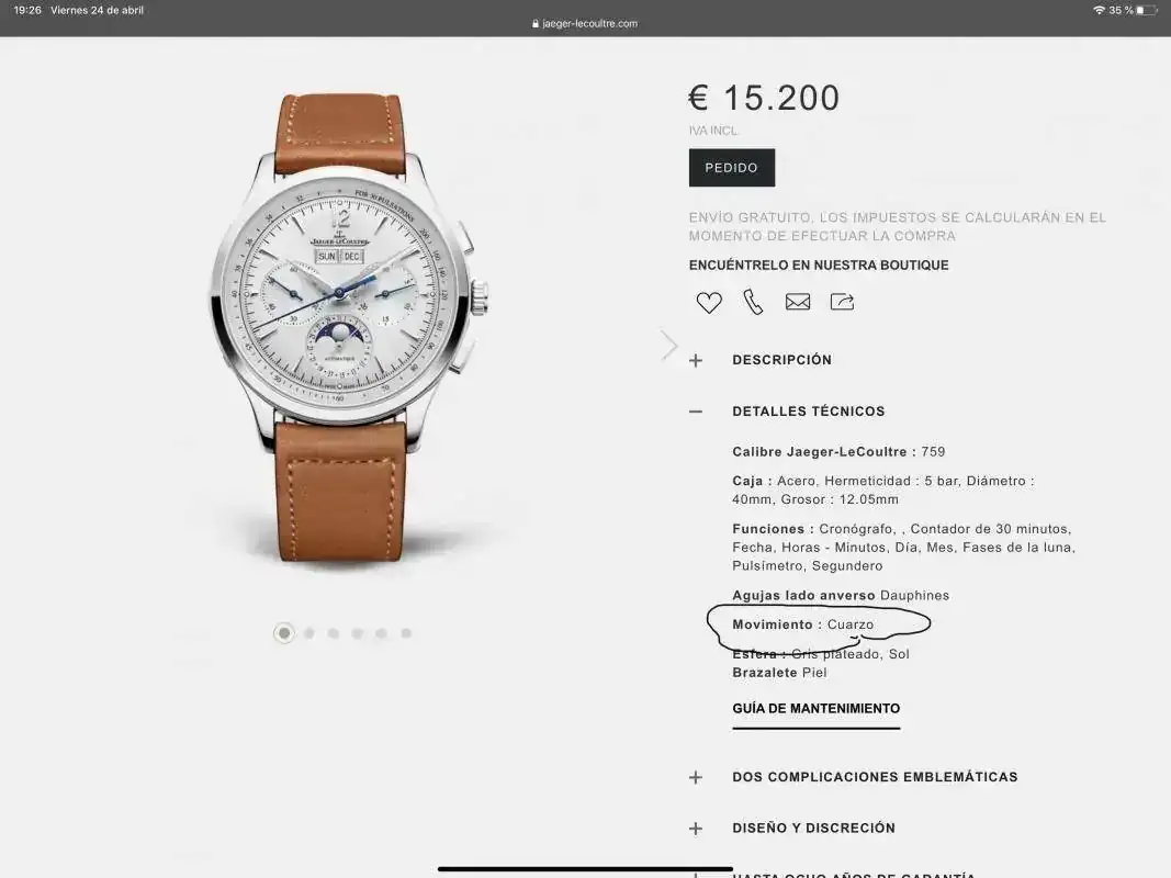 Si lo ves en su pagina se han equivocado y dice movimiento cuarzo 😂😂😂😂😂