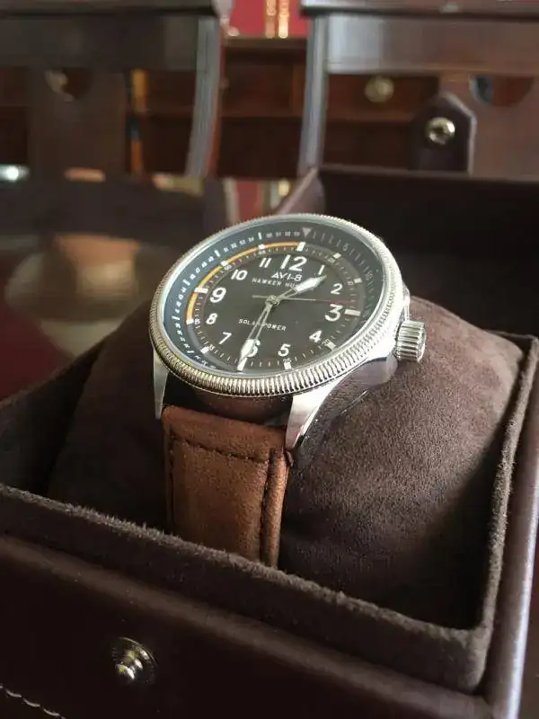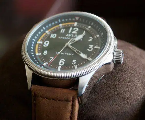 Se trata de un reloj con energía solar (sin batería) de estilo aviación británica y que está nuevo (sin uso)