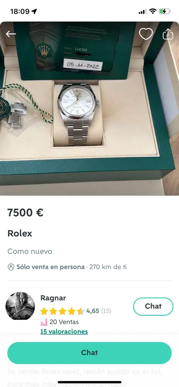 Hoy ojeando Wallapop veo este reloj publicado donde se puede leer perfectamente que el reloj ha sido pulido en Sat oficial, ante mi asombro le escribo para preguntarle el motivo de ese pulido y si el reloj tenía algo reseñable y efectivamente ha obviado toda la historia ocurrida, indicando solamente que el reloj está en garantía y que lo ha pulido por unos pelillos y lo maniático que es uno.