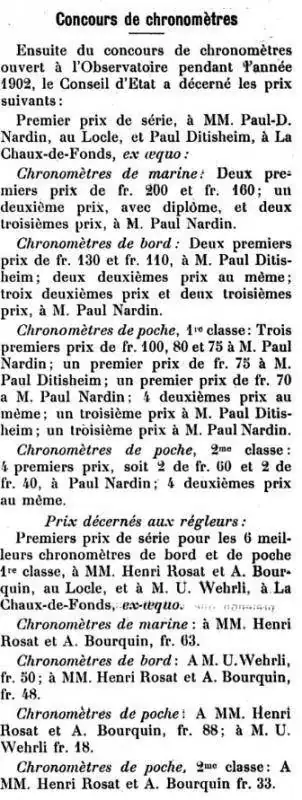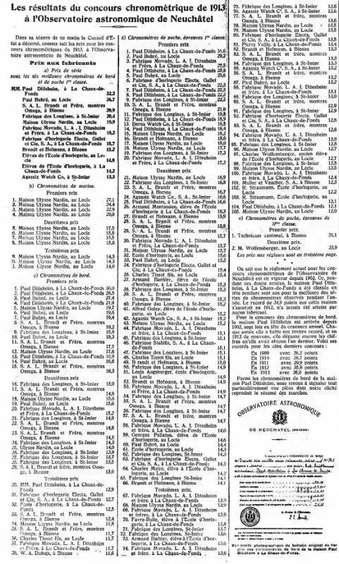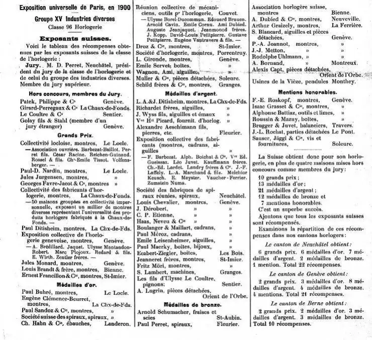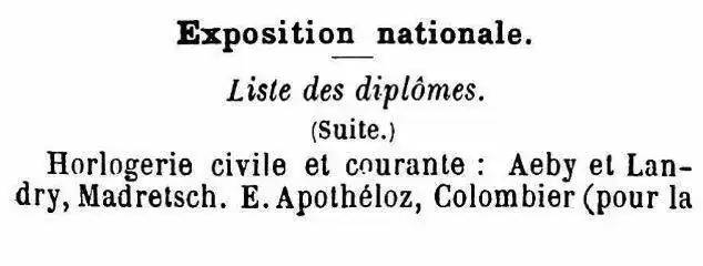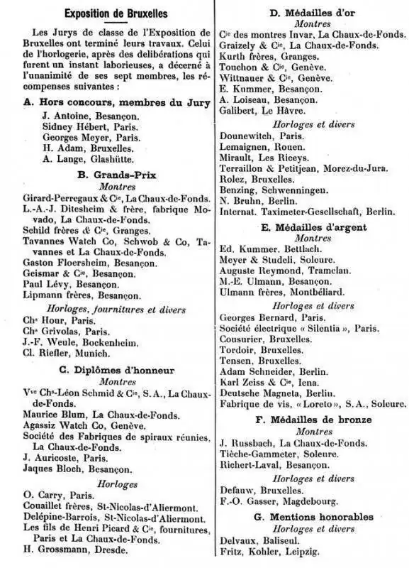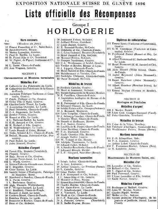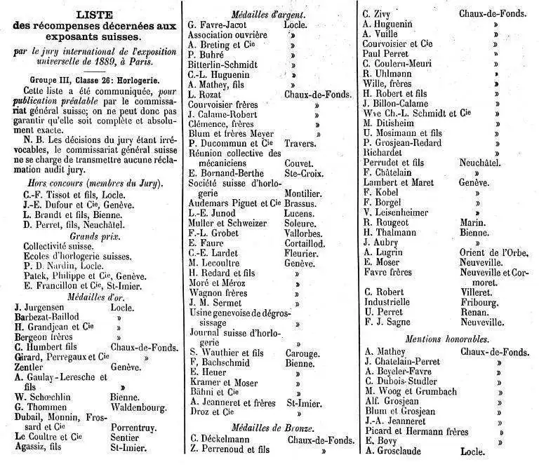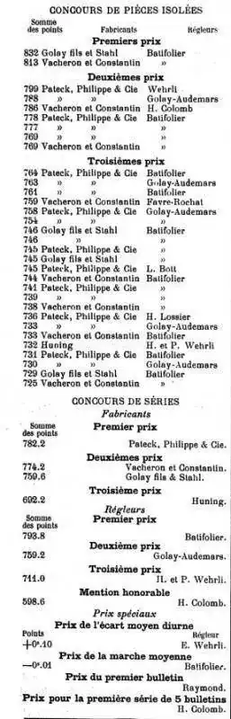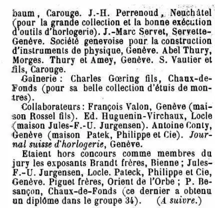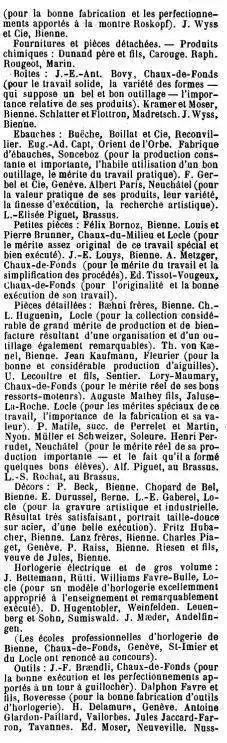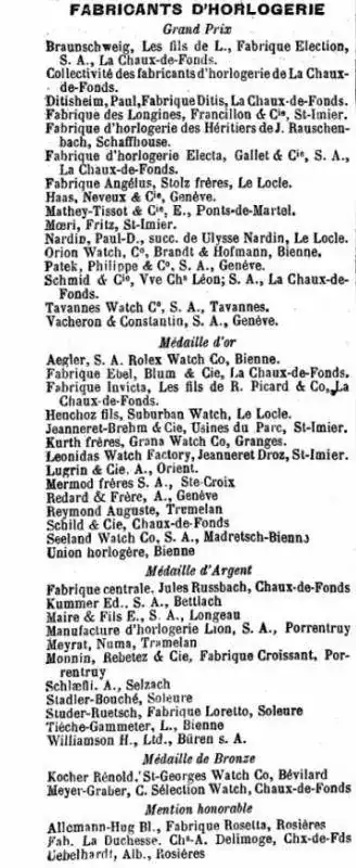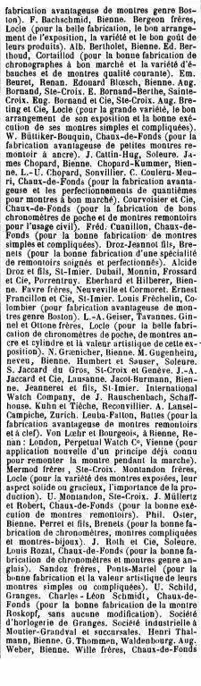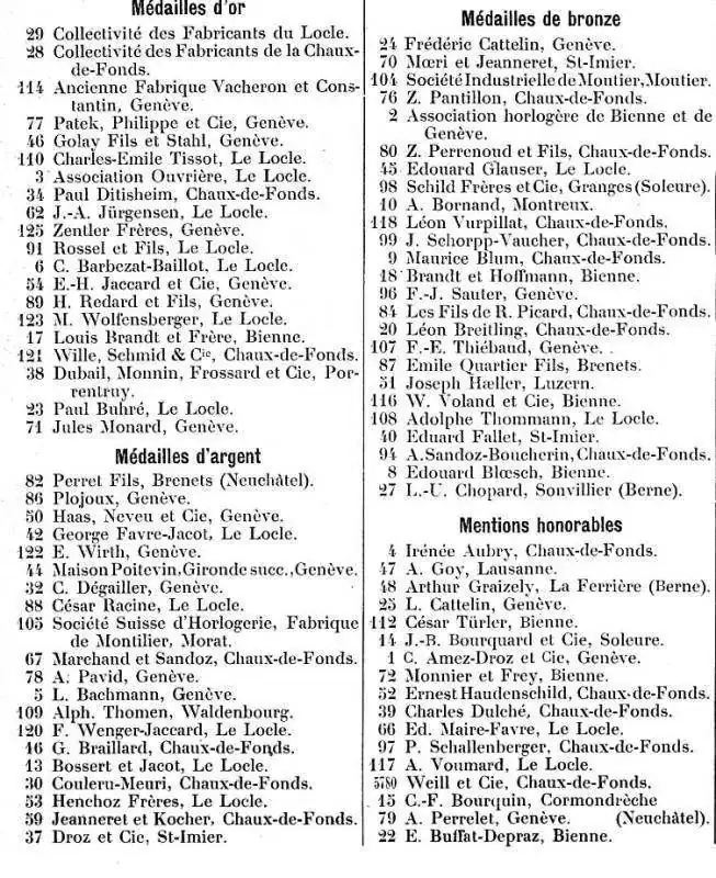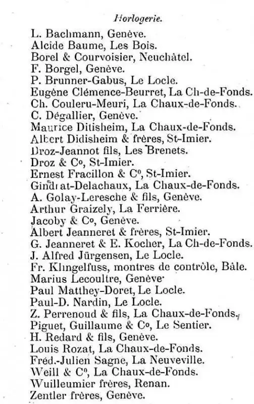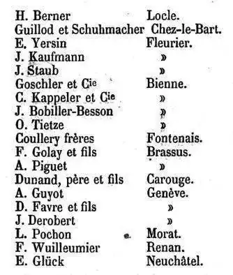 Lista obtenida fuera de "La Fédération Horlogère Suisse" ya que no se publicó hasta 1886.