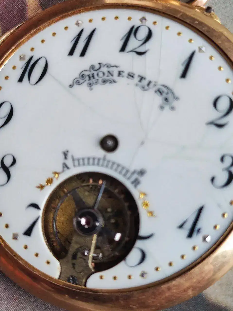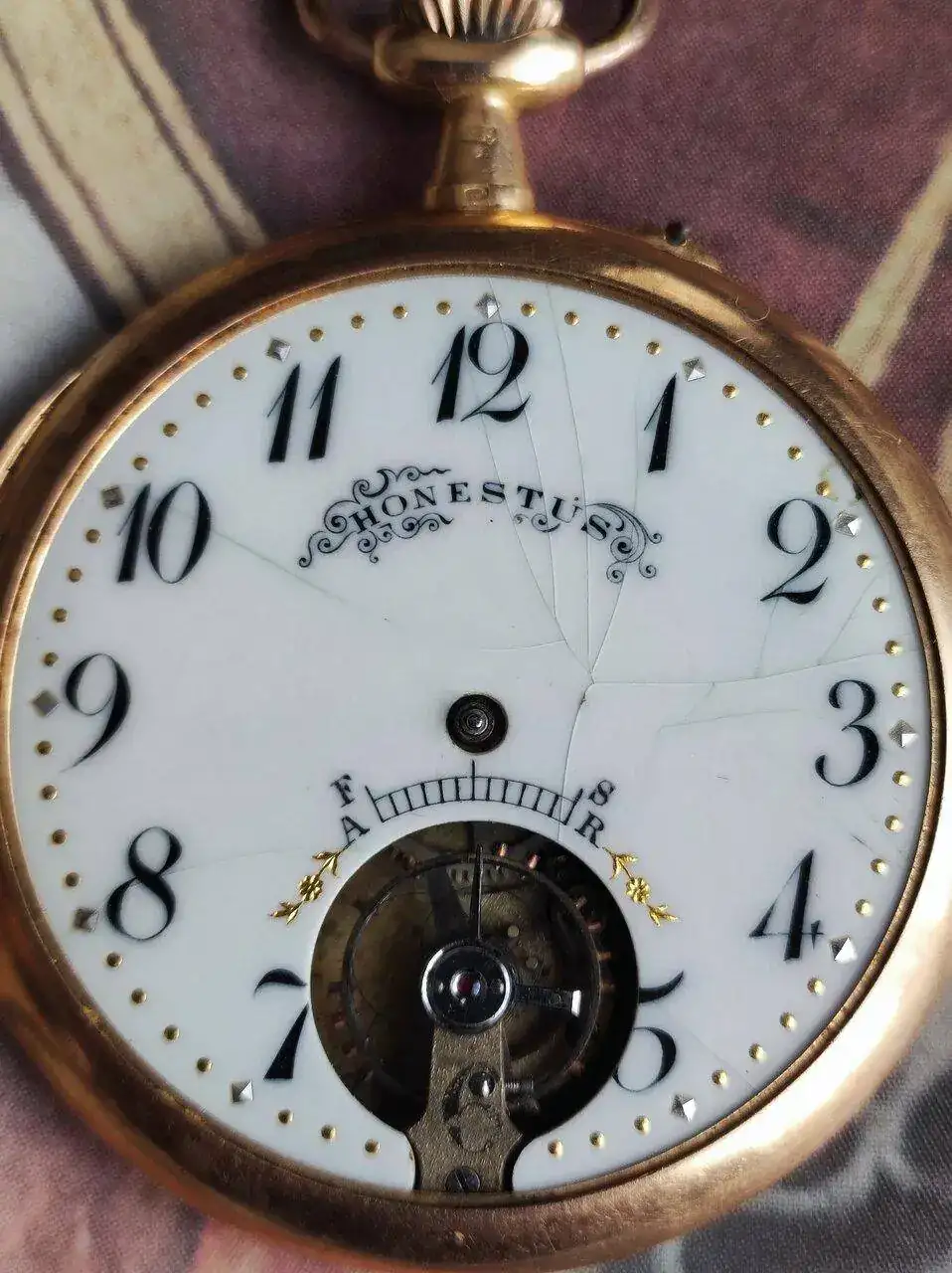 Ha aparecido en la casa familiar este reloj. Lo he llevado a ver si lo ponen en marcha de nuevo, a pedir presupuesto, y me han comentado que es un reloj muy raro, con reserva de marcha de ocho dias... Hasta donde yo sé, lo normal son de 24 a 48 horas. La verdad es que no tengo ni idea, nunca he leído de algo así y me suena cuanto menos, raro, raro, raro, raro..., y no sé si merece la pena, el presupuesto es algo abultado. Es tipo Lepine con vista a la raqueta en la esfera, algo cuanto menos curioso.