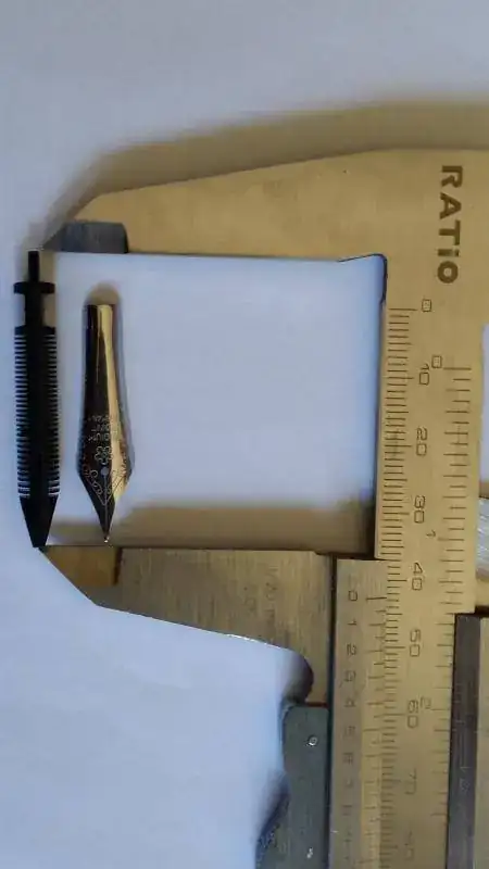 Como he mencionado en otro hilo, hace poco he comprado una pluma de madera torneada en madera de cocobolo, cerezo y ébano con kit "iridium point germany". Sin prisa, pero sin pausa, me propongo cambiar el infame conjunto de escritura por algo de mayor calidad. Con un ojo puesto en plumines y alimentadores Jowo (fpnibs), y con un nivel medio de trasteo plumeril, pido consejo a los sabios del foro en cómo comprar el conjunto alimentador adecuado "en remoto", ya que mi ciudad es un erial en estilográficas. El alimentador plástico chino lleva una numeración, un "1" que seguro que servirá para poco. ¿Mido el diámetro del alimentador y contacto con el vendedor de Jowo? ¿que es lo más adecuado?. Soy todo oidos y gracias por vuestros conocimientos y vuestro tiempo que vais a dedicar en responderme.