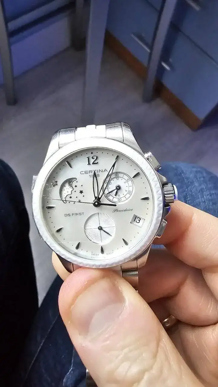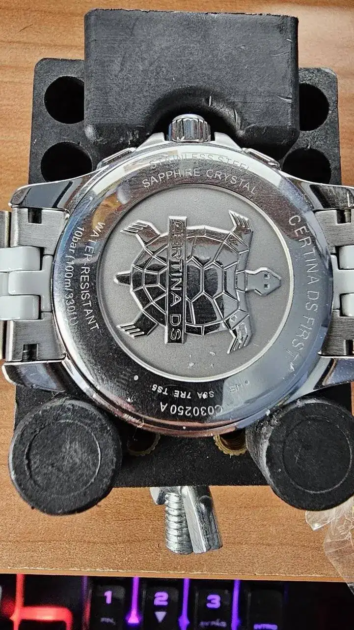 Buenos días, pues a ver si alguien me puede iluminar un poco,a mi mujer se le quedo sin pila el reloj y como no puede estar sin el y Certina nos pilla muy lejos, y yo ya he cambiado mas de una pila algunos relojes ,y tengo toda o casi toda la herramienta pues me puse a ello,decir que la tapa va a presión del Certina, pues el caso es que buscando la muesca para poder abrirle ,pues no hay muesca la verdad o yo no o he visto,pero se abrió fácil sin problemas.
