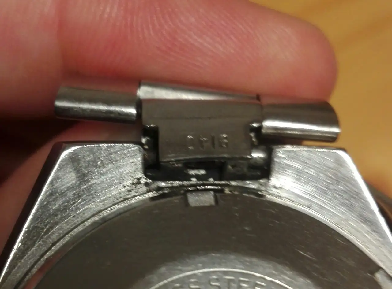 A ver, si no quieres arriesgarte a cerrar el terminal (en este caso end link al ser un diseño un poco de tipo brazalete integrado) apretándolo (tendría que estar muy deteriorado para que tenga riesgo de rotura al apretar, y por lo que veo no me parece que esté tan deteriorado, aunque habría que verlo en la mano para juzgar con criterio), la alternativa más sencilla para reducir el espacio del terminal a la caja del reloj pasa por forrar el pasador para que la cara superior interna del terminal no descanse diréctamente sobre él como sucede ahora; forrando el pasador se crearía la distancia necesaria para que el terminal suba y se reduzca visualmente ese hueco o distancia que ahora tiene respecto a la caja, te he dibujado un esquema en 2 minutos de manera super cutre, pero supongo que para entenderse valdrá: