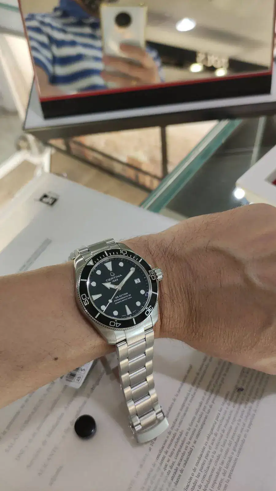 Tengo claro que no quiero que sea más de 42 mm, me he probado el Tag Heuer Aquaracer y el Longines Legend Diver y los dos, en el último caso por las asas, se me han hecho grande en la muñeca.