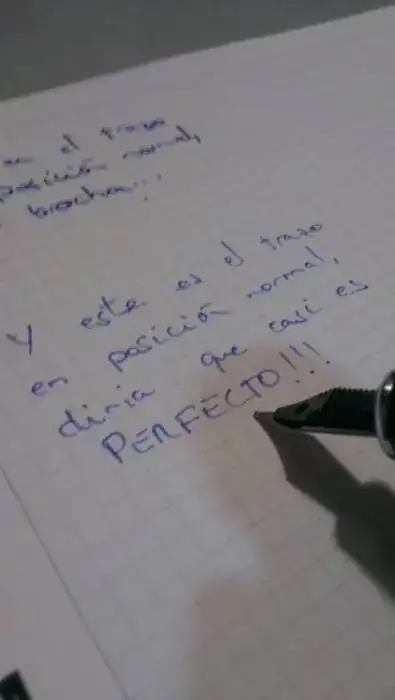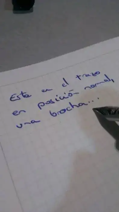 El tema esta en que si escribo normal, y mi letra no es muy grande, se me hace bastante ilegible (independientemente de mi letra, que es un auténtico desastre) pero si escribo con ella con el plumin al contrario (en las fotos veréis las posiciones) es casi que el trazo perfecto, más fino que la Faber...