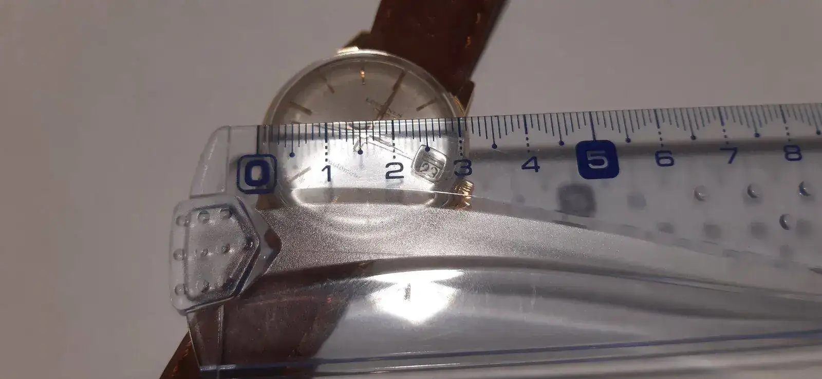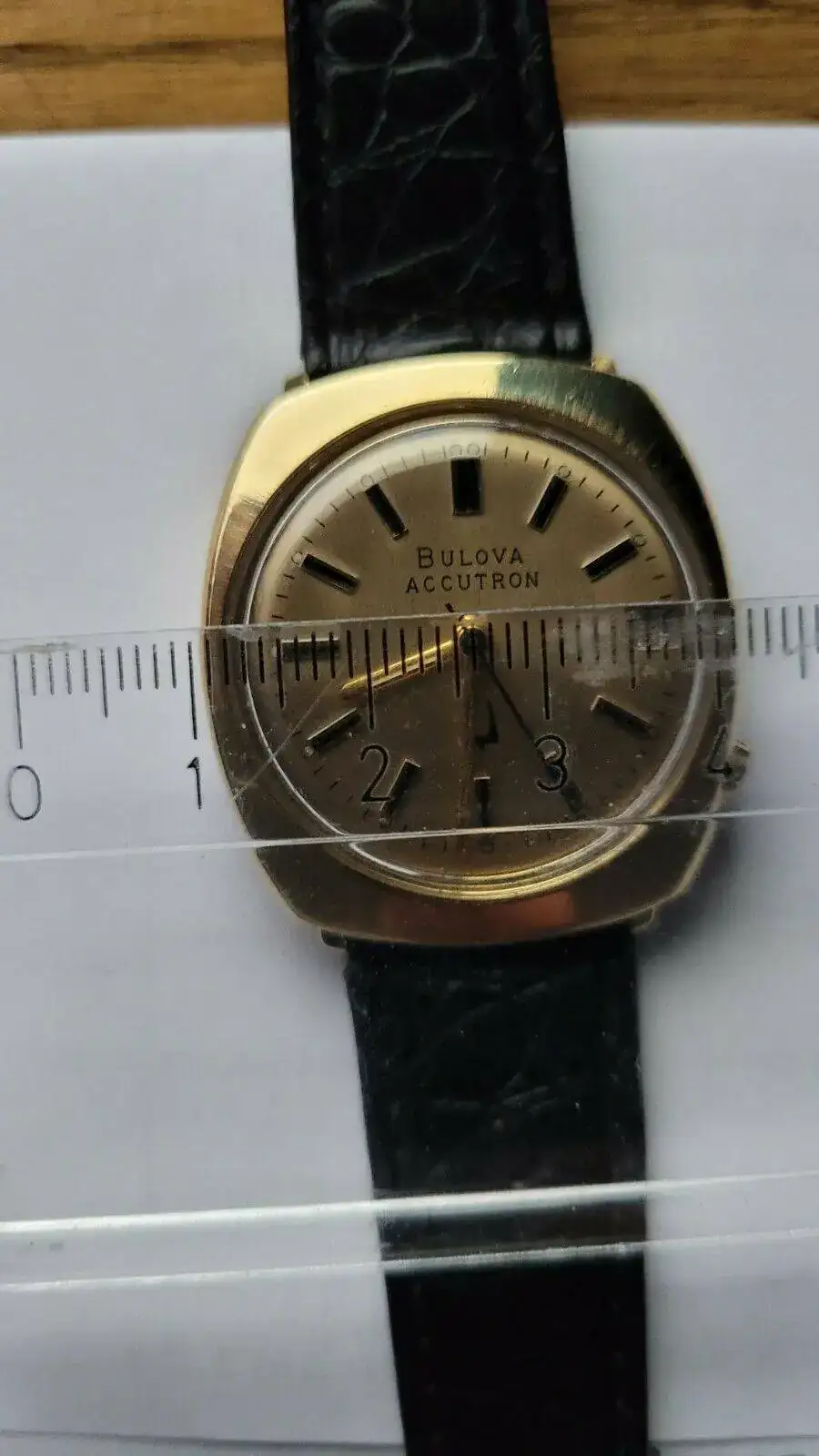 Se me ocurre que si alguno de vosotros tiene uno igual y puede enviarme foto con el calibre midiéndolo sería una buena prueba. O información oficial de Bulova donde se indiquen las medidas de este modelo.