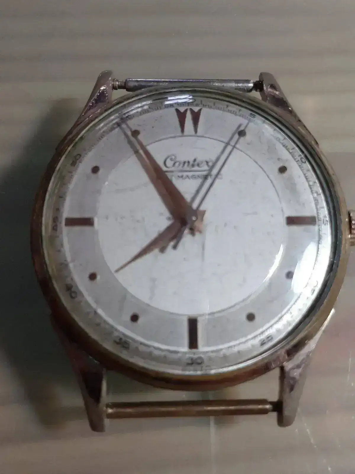 Buenas noches ¡ Esta mañana os saludaba con este Contex recien llegado. Ahora con mas tiempo le he abierto la tapa y monta una maquinaria que no viene firmada . Como siempre os pido ayuda para identificar este calibre del que me llama la atención ese puente tan especial :