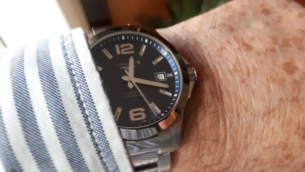 En cuanto a ajuste del calibre, tuve el Conquest en 41 y ahora lo tengo en 39, y ambos iban en +1 diario, y el Tissot con su Powermatic 80 con espiral de silicio va en -1, así que en ese sentido no tengo ninguna queja tampoco.