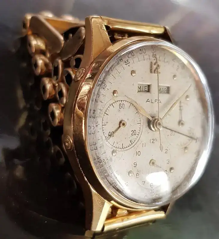 Pues te puedo decir que el calibre Angelus que monta es una joya de la mecánica y que fué usado por muchas marcas de la época.