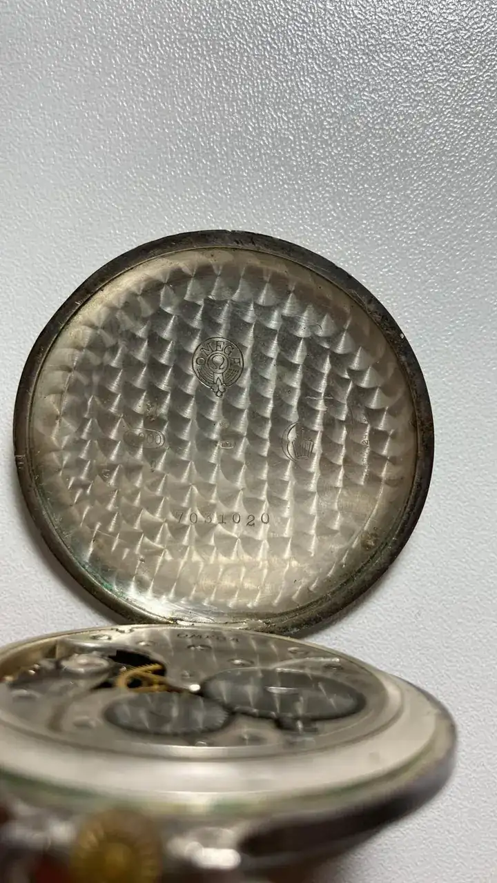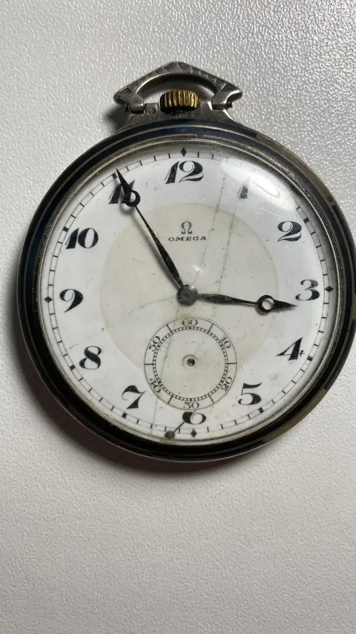 Este es mi primer mensaje en el foro, aprovechando un hallazgo familiar que no se exactamente como ubicar. Realizando una mudanza en una casa antigua, aparece el Omega de bolsillo cuyas fotografías os adjunto en este hilo, como podéis observar la aguja del segundero se rompió en algún momento, permaneciendo dentro de la esfera.