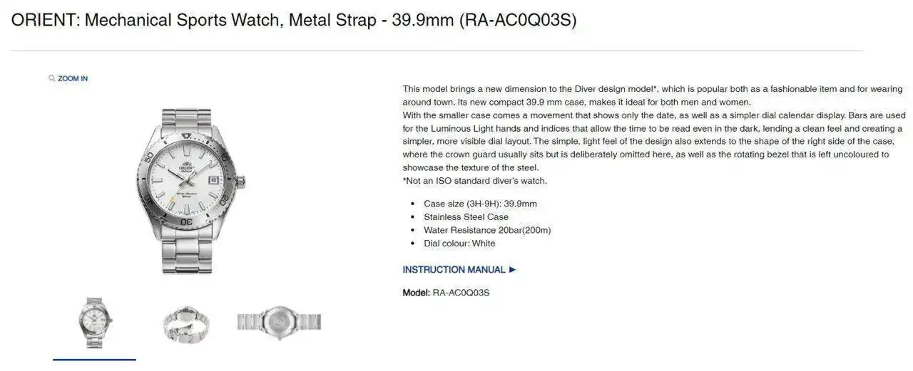 Respecto a tu duda sobre la referencia, en la página de Orient (internacional) la referencia es la corta:Buena noches camaradas,