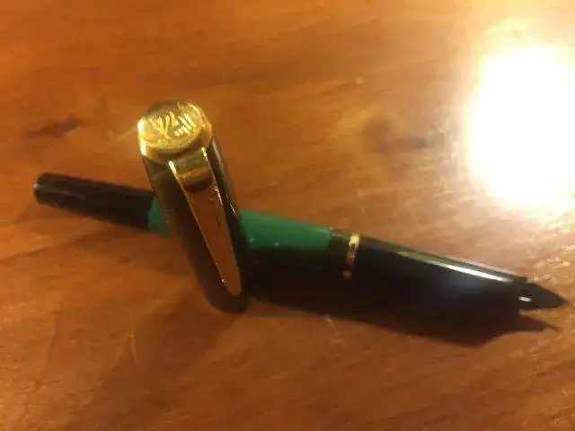 Estimados, los saludo desde Chile y les pido su ayuda para saber que modelo es esta Pelikan que encontré y que ya puse a reposar en agua con lava vajilla durante un día entero, pero aun así debo mover el émbolo para empujar la tinta hasta la salida, escribe un rato y luego se para, teniendo que volver a empujar el émbolo para seguir escribiendo. En mi ciudad (Concepción) no hay dónde enviar a reparar ni revisar estilográficas, por eso solicito su valiosa ayuda, desde ya gracias