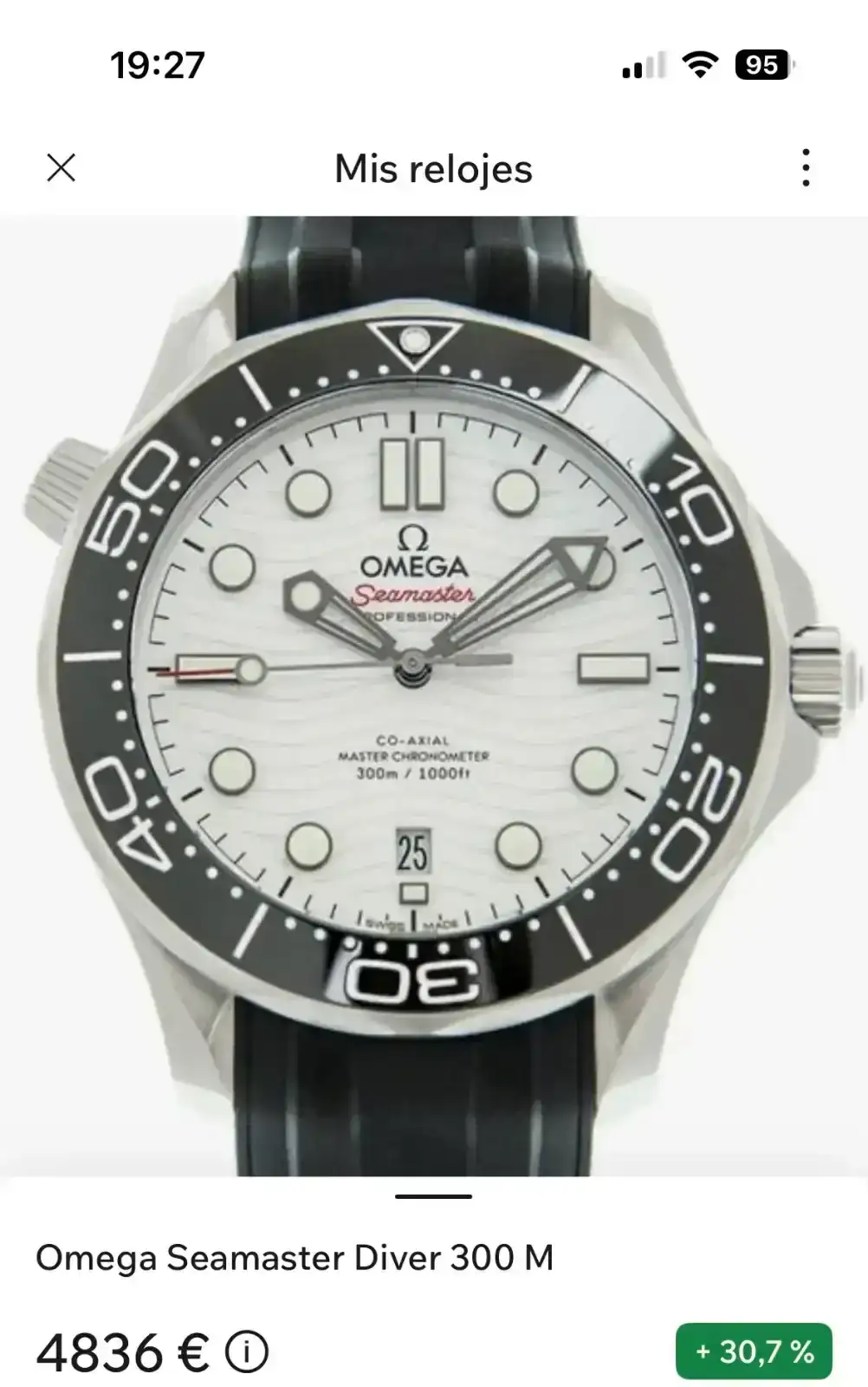 Tengo un Omega Seamaster Ref. 210.32.42.20.04.001. Es el de esfera blanca polar con ondas de ola láser, trasera con ventana en zafiro, calibre coaxial 8800.