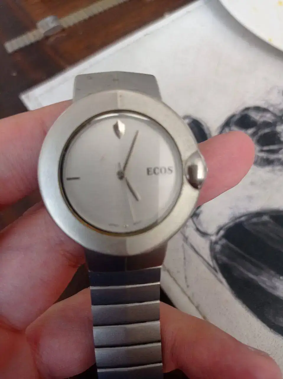 Cómo bien ven es marca Ecos y según veo es japonés, si alguien me puede ayudar con la ayuda de la marca lo agradecería y mucho. En la parte trasera de la caja aparece "Ecos. Water resistant. Stainless steel black. 2104".
