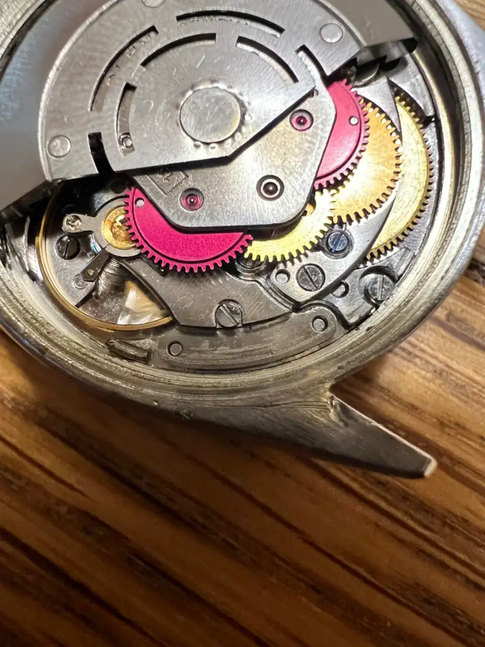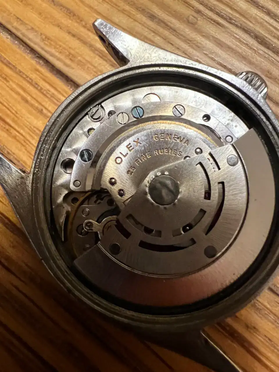 Gracias por vuestras respuestas, lo cierto es que estoy de acuerdo con casi todos vuestros comentarios en parte. Sobre todo con el completo comentario de KIKEMORGAN, yo he revisado rueda por ruede tornillo por tornillo y el mecanismo es indudablemente parecido con el movimiento original, de hecho yo no veo ninguna diferencia con el original excepción de la R. Incluso los tornillos están en la misma disposición y tiene los tornillos azules, igual que el movimiento original. En cuanto al número del modelo, si bien efectivamente se corresponde con el modelo Air King, también es cierto que si buscas más en profundidad por Internet, se encuentra también el mismo modelo con números romanos del Oyster Perpetual…