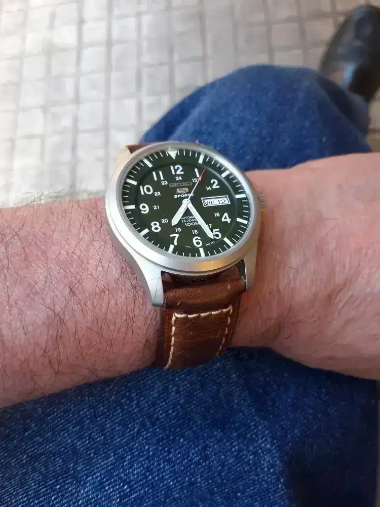 El reloj es bonito, tiene un tamaño que a mi me va genial, tengo una muñeca de 16,5 pero con esa correa y otra de cuero mala que le puse, la que venía con un Seagull que también pillé el año pasado, pues que no lo veo, me aburre, no me dice nada.