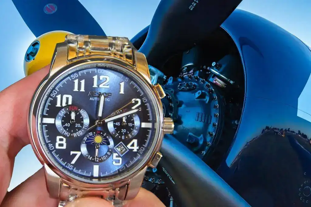 AESOP. Automático, se le puede dar cuerda, sin parada de segundero.