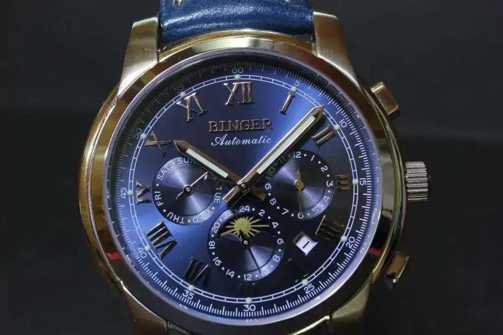 Binger: Automático, con capacidad de darle cuerda y sin parada de segundero