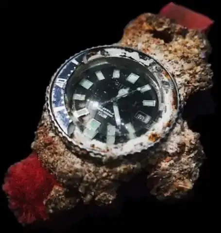 En 1983, se encontró un reloj “Challenge Diver” de CITIZEN en Long Beach, Australia. Cuando el buceador lo descubre, se sorprende al ver que sigue funcionando, incluso completamente cubierto por percebes y otros moluscos.