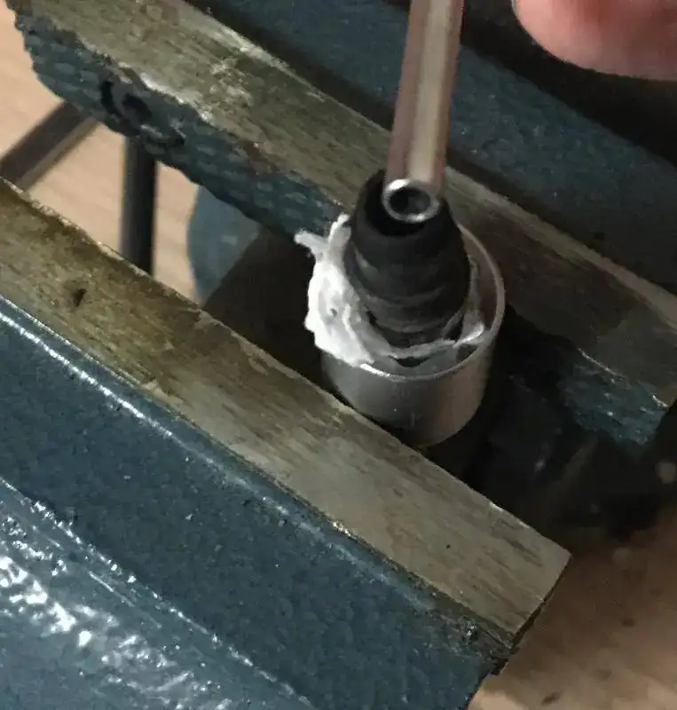 El capuchón está descolorido y con unas marcas de algo que parece óxido cerca de la rosca.