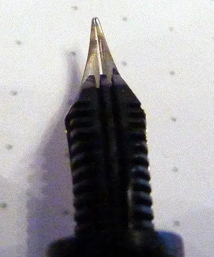 El plumín como podéis observar está tocado. Adjunto prueba de escritura para que veáis que como palillero funciona, no rasca nada y el flujo es muy constante, pero el trazo es tan grueso que a penas se nota que es flexible.