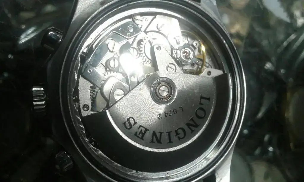Por la referencia L 674.2 el calibre podría ser un valjoux 7750 modificado, mejor dejarlo en 77XX-?, y tal como te sugiere felixx puede ser de principios de los '80, aunque el calibre sea más veterano. El resto lo puedes ver tu; crono, automático, day-date, etc., y poco más te puedo aportar. Lo había visto 3 agujas y con la leyenda y las 5 estrellas a las 6, crono, no.