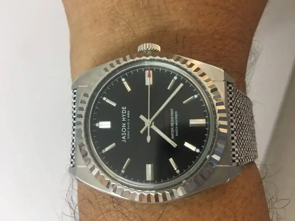 Hace tres semanas aparezco por casa con mi última compra, un reloj de moda pero que me gusta mucho, un Jason Hyde. Lo presenté en el foro y tuvo incluso buena acogida porque tiene una estética muy bonita. Estaba releyendo las opiniones cuando se me acercó mi hijo de 14 años, ve el reloj y dice: Uy, qué chulo, ¿me lo dejas probar? Yo, lógicamente me lo saco de la muñeca y le ayudo a ponérselo, él se lo acomoda y lo mira y remira. -Es guapísimo, déjamelo un rato.