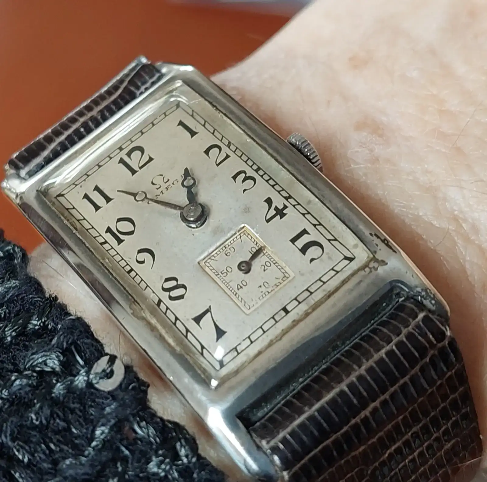 Hola a todos, hace años q tengo este reloj metido en su caja y hasta ahora no me había dado por abrirlo y e intentar saber todo lo q pueda sobre él, así q os lo muestro para q podáis ayudarme a ello. Sé (obviamente) q es un omega rectangular( no sé si le llaman curve, tounneau o art decó), por su número de serie creo q se fabricó en 1935, me han dicho q la caja de oro es original fabricada en Suiza ( dp me he enterado q tb se hacían en España), tiene 15 joyas, pero no tengo ni idea del mecanismo, calibre, volante, ni datos técnicos de esos q solo los expertos podéis saber, por eso os pido vuestra ayuda. Os lo agradezco de antemano, espero q os guste. Ah, mide 31 mm de alto sin contar las orejeras y 21mm de ancho sin contar la corona. Le he dado cuerda y ha estado dando bien la hora durante un día antes de pararse. Tb agradecería si pudiera algún forero a recomendarme algún buen relojero en Sevilla para q lo ponga a punto y lo limpie ya q desde 1975, fecha en q falleció mi abuelo, no se le ha hecho ninguna revisión . Un saludo a todos