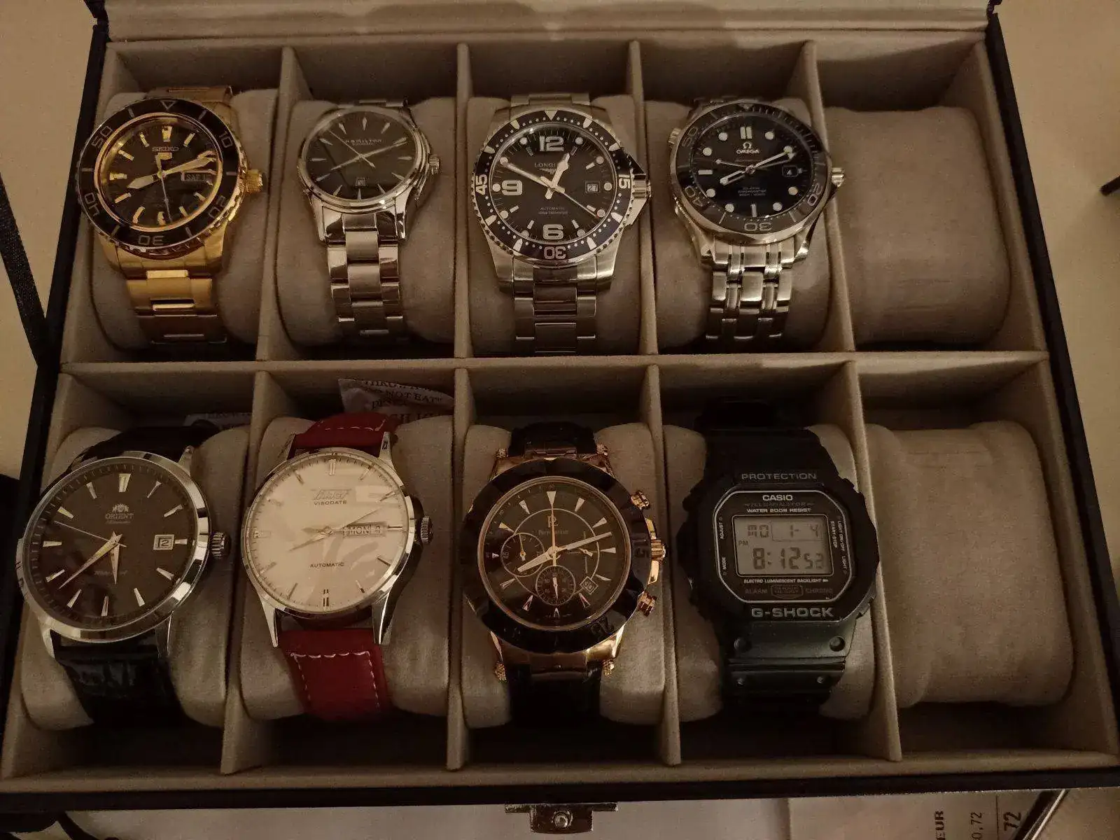 Buenas alternativas! Yo añadiría el certina DS ph 200 y Meccaniche veneciane negro con bisel rojo. Ya pasarás foto!Pues lo dicho. Os paso foto de la caja. Tiene dos huecos. Llegará un chino pero no cuenta. Tengo un problema. La máxima de tener máximo 10 y no tengo mucho juego porque 5 son intocables. Qué son: longines, tissot, orient, Hamilton y Pierre lannier (marca de moda inflada de precio, pero el regalo de una madre es el regalo de una madre). Son intocables porque han sido regalos de mi mujer o de mi madre por acontecimientos importantes de mi vida cómo boda, nacimiento de mi hijo, logros académicos y cosas así.