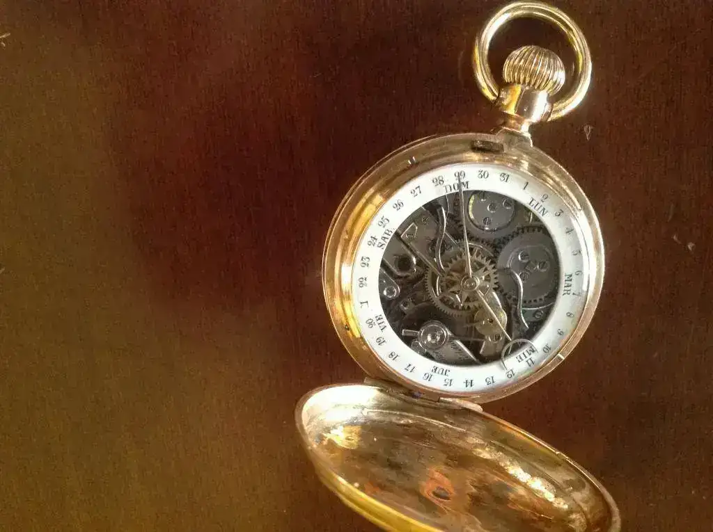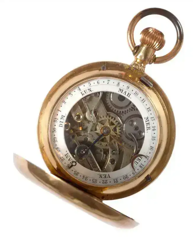 Cara posterior :esfera de porcelana,con calendario solar ,de 5mm de ancho,con dias del mes y de la semana en castellano.
