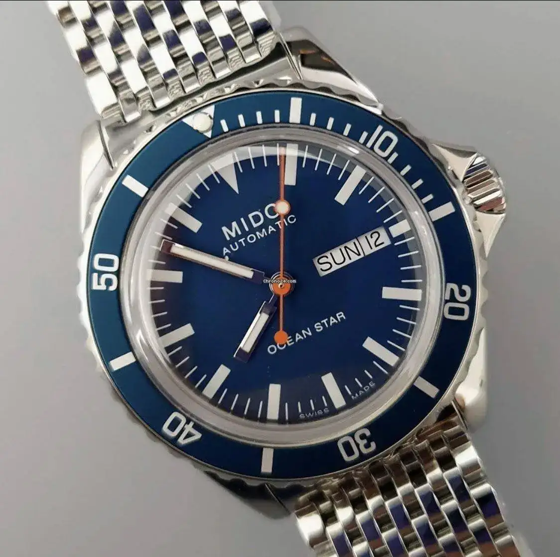 El Mido en un azul más apagado y con brazalete creo que es una opción estupenda.