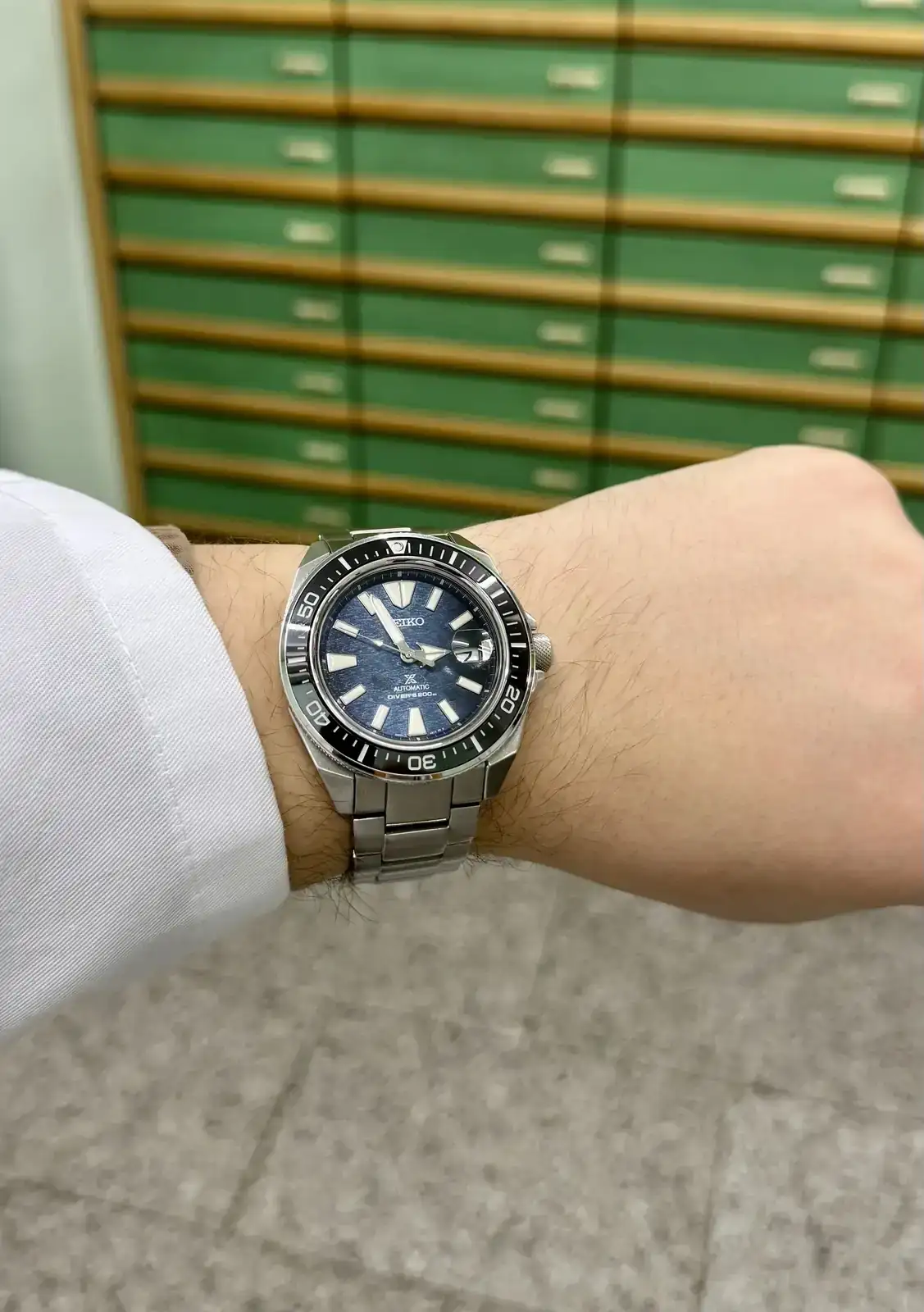 Ese modelo de King Samurai no lo tengo. Tengo el dark manta (srpf79), pero te enseño fotos reales en la muñeca (17-18cm según temporada):