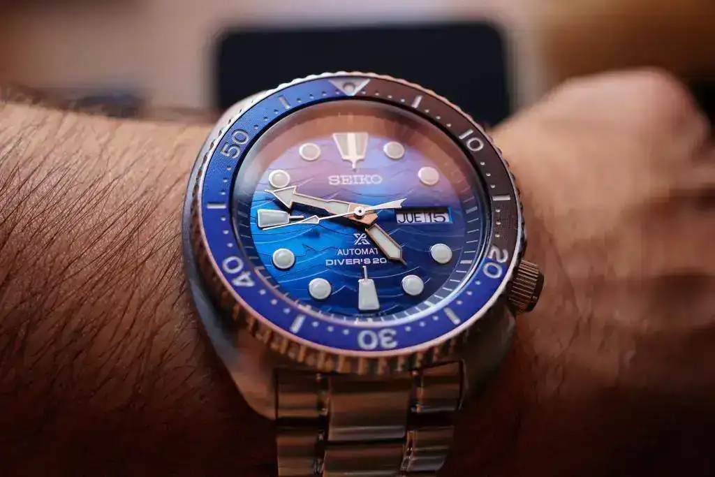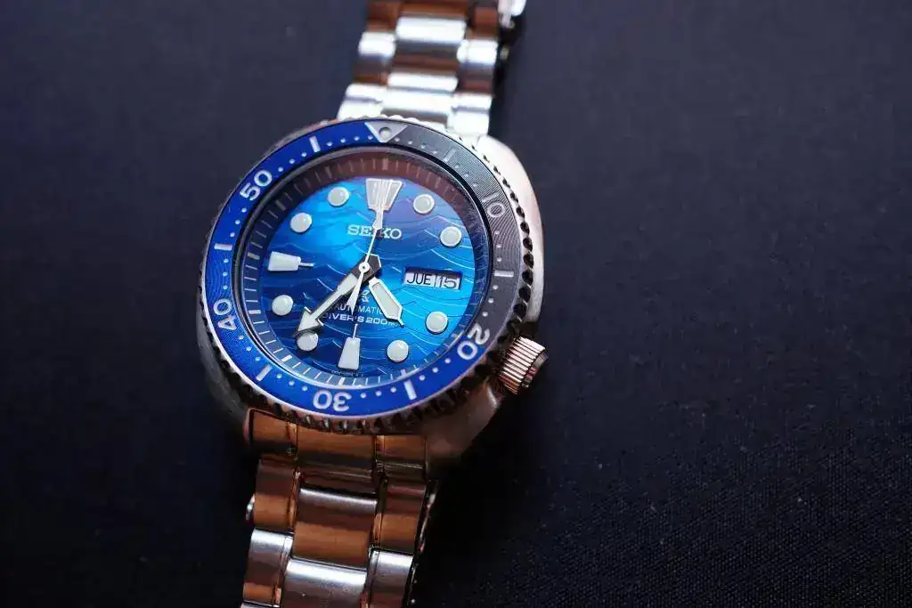 Yo creo que este reloj no viene de almacén y ha estado expuesto en algun sitio, porque viene con una etiqueta colgada con el precio. Y la katana que viene en el estuche está descolorida por encima, cómo si le hubiera dado mucho tiempo el sol.