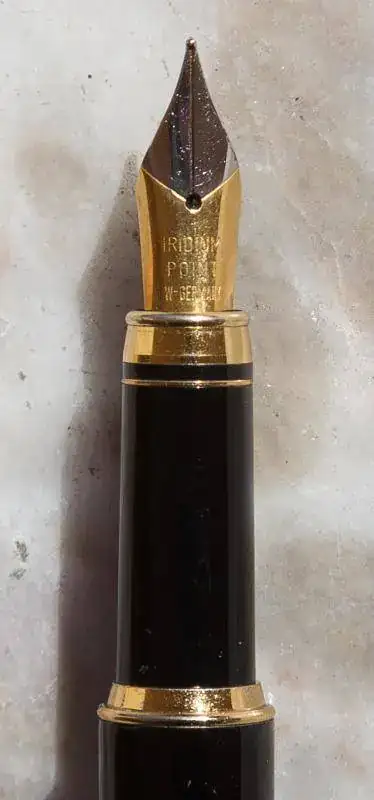 Acabo de darle un vistazo a la otra, y la inscripción del plumín, igual que en esta es Iridium point WGermany, lo que parece indicar que son anteriores a la reunificación alemana. A la otra la acabo de cargar para ver cómo rula y va estupenda, fluidísima de flujo, tacto un poco de clavo pero no desagradable (estilo a las Pelikan o Kaweco), pero muy segura de trazo... una pluma buena sin rodeos. Hasta podría creerme que fuera de fabricación alemana de los 80; el plumín de hombros cuadrados se parece mucho a los de las Dator de origen Reform, y su fluidez es equiparable.