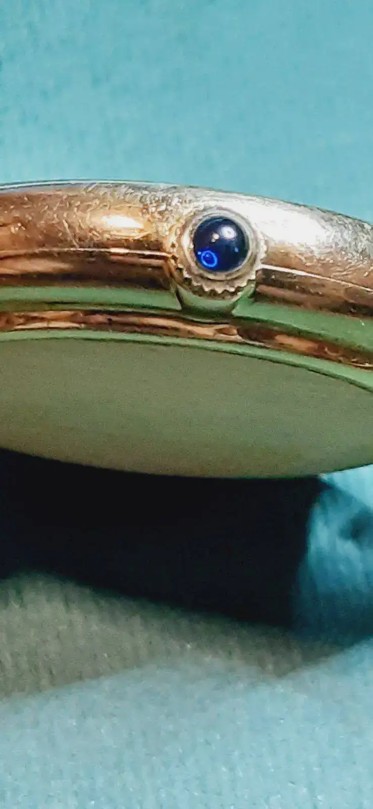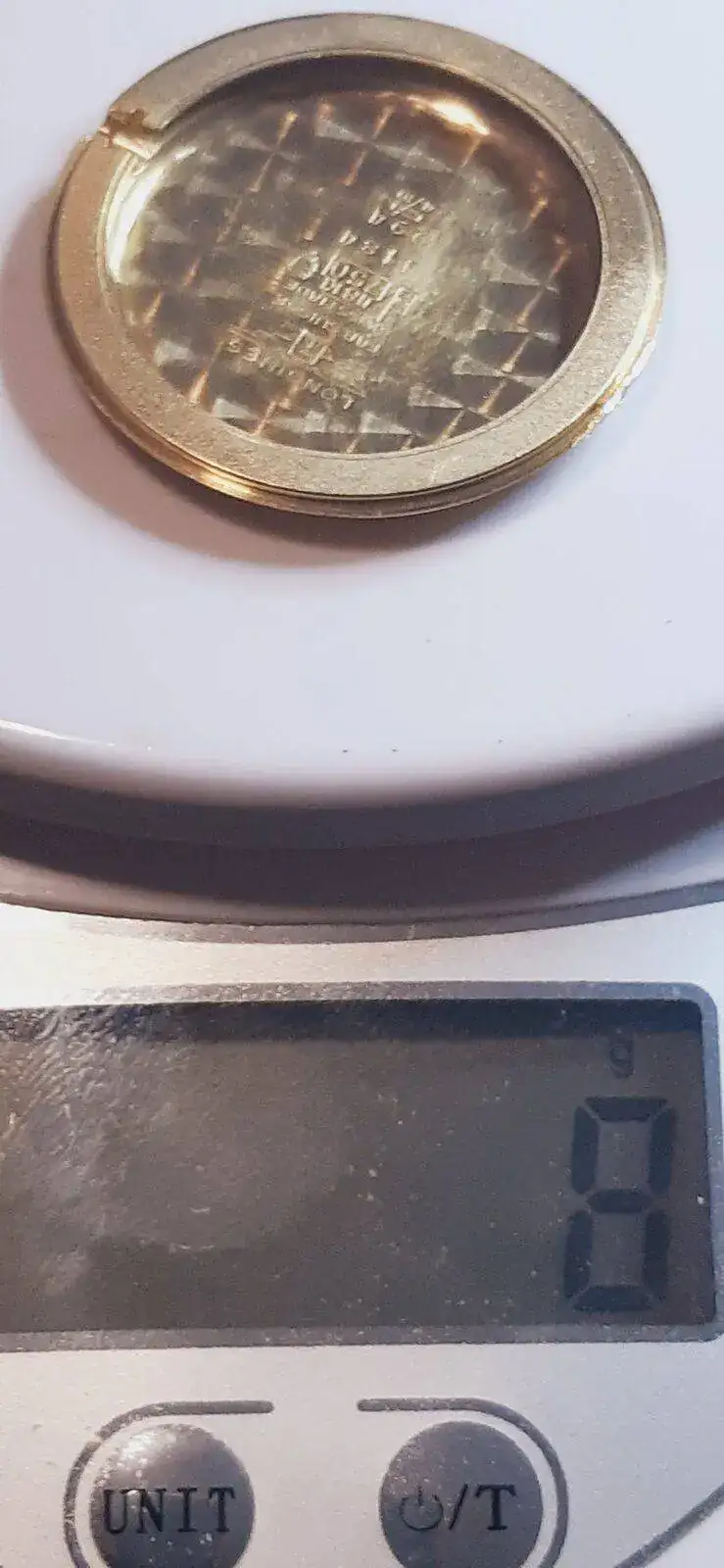 No tiene el sello de calidad de oro en lugar visible, tiene una numeración y un seño muy pequeño que no doy yo como válido, esperemos que al abrirlo por la cara interior haya un sello claro de pureza del oro... ¡Y espero no encontrarme por ahí siglas como GP, GF o demás inventos para dar gato por liebre!